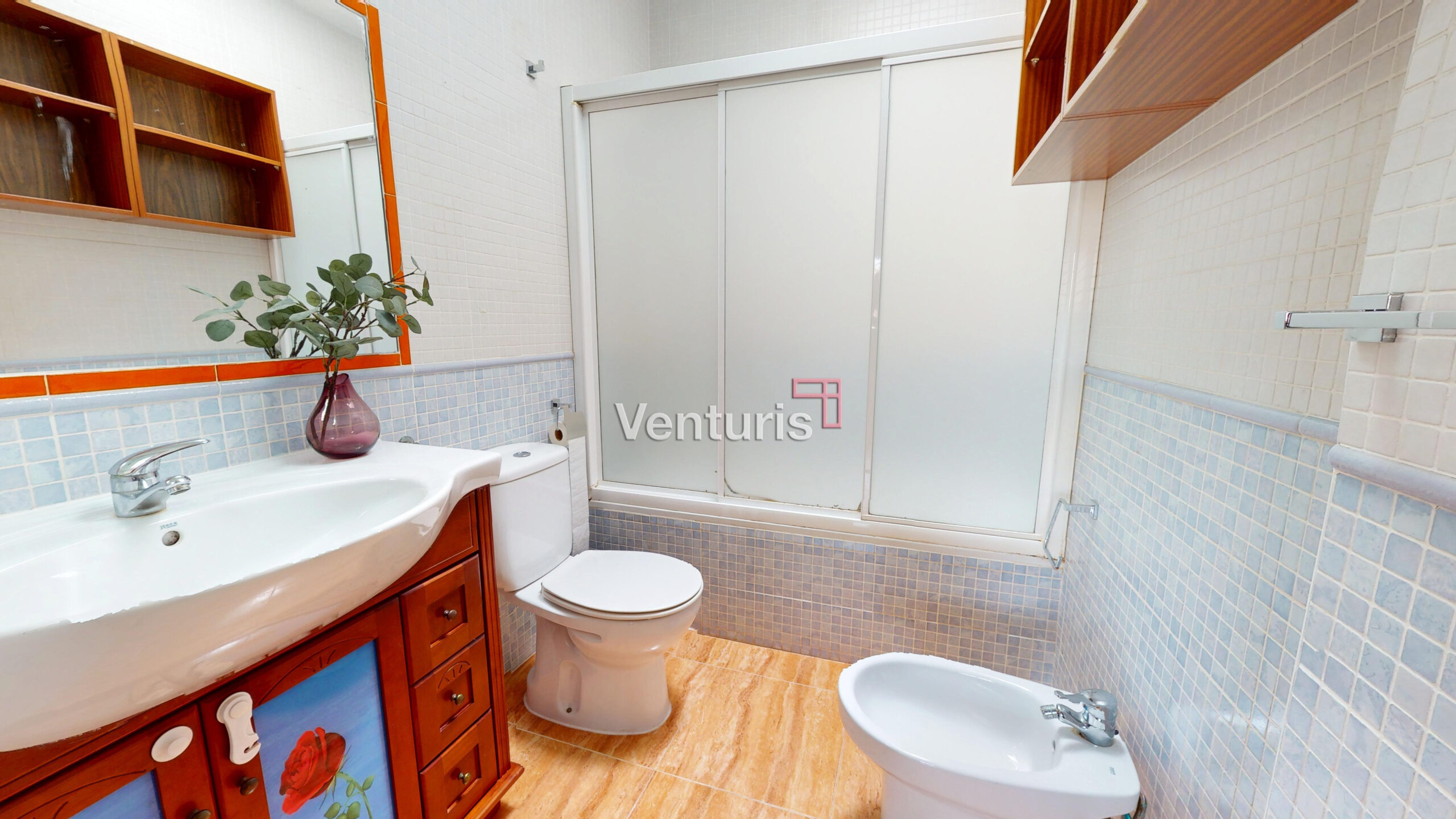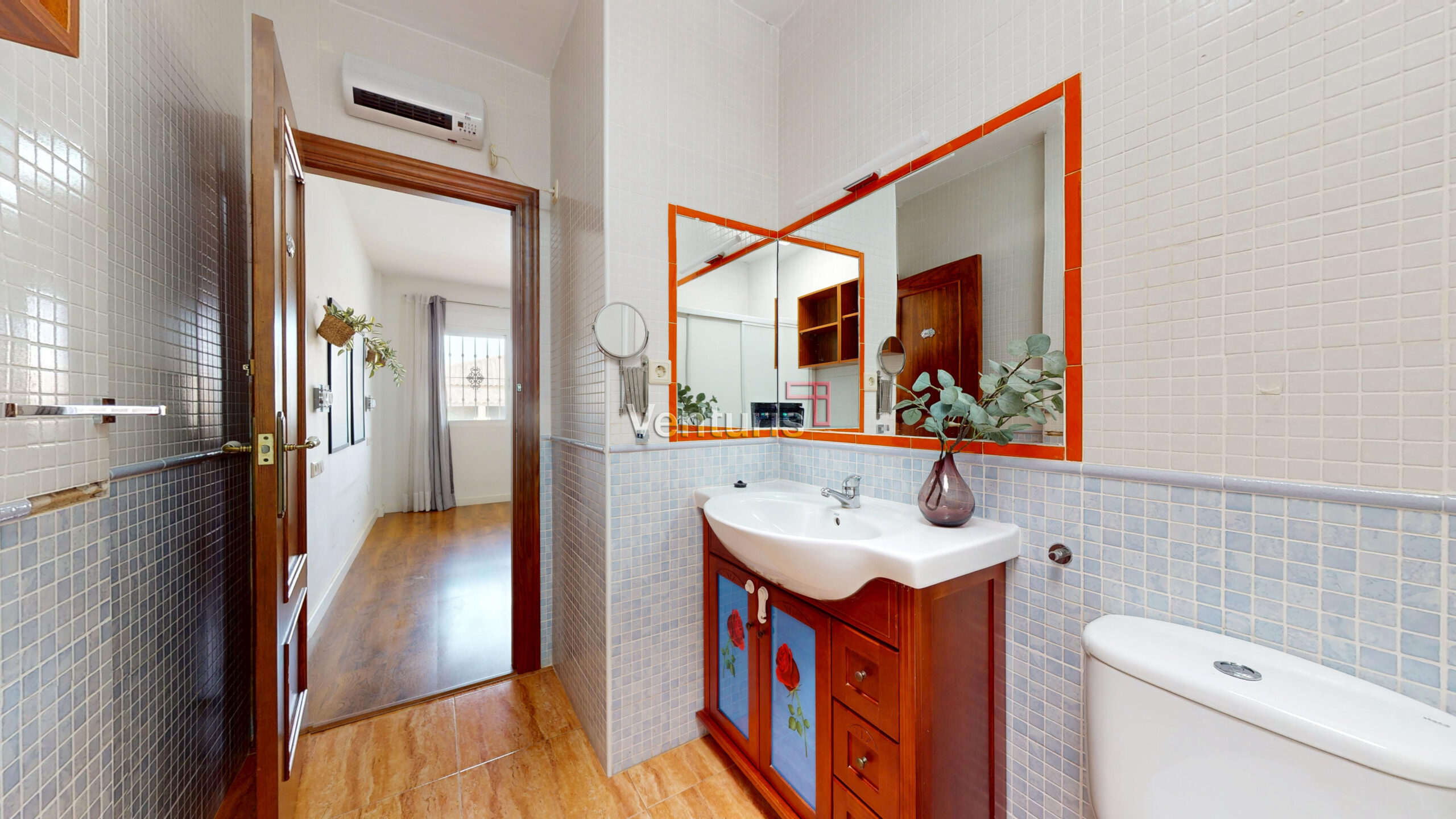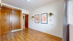 El inmueble cuenta con suelos de tarima en color nogal, bien cuidados, y paredes lisas que esperan tu toque personal con una nueva capa de pintura. Disfruta de la comodidad de dos baños completos, uno de ellos en la habitación suite, así como armarios empotrados en todas las habitaciones. Las ventanas de climalit con mosquiteras garantizan un ambiente fresco y agradable en cualquier época del año.