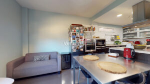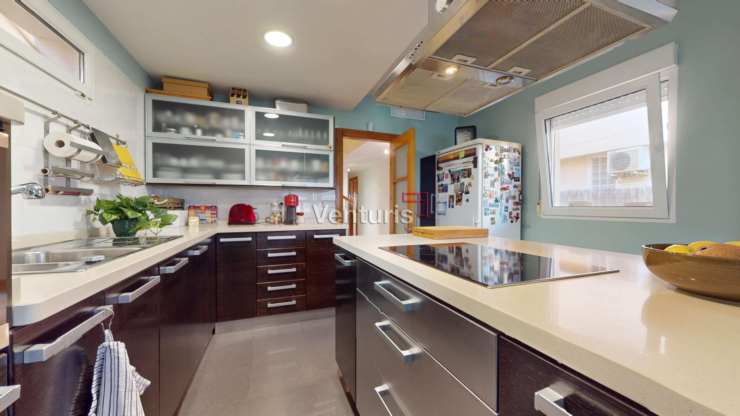 La amplia cocina está diseñada para ser el corazón del hogar, con espacio suficiente para desayunos y comidas familiares, además de contar con electrodomésticos panelados que aportan un toque moderno.